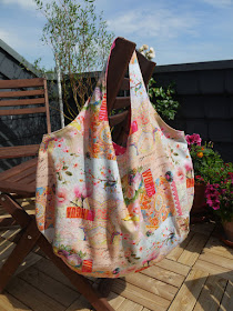 Ich habe diese Tasche schon einmal genäht. Sie hat mir gute Dienste geleistet und zwar nicht nur am Strand, denn sie eignet sich genauso für Einkäufe oder Sportsachen. Ein echtes Allroundgenie. Den Stoff habe ich auf dem Stoffmarkt entdeckt und wusste genau, dass daraus meine neue Strandbegleitung wird. Das Wetter spielt ja auch mit ....
